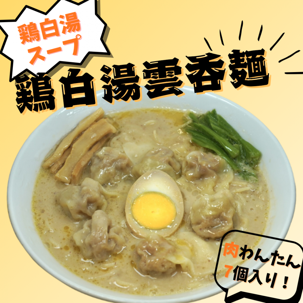 日頃より、広州市場をご利用いただきありがとうございます。 本日、1/23(金)より、新商品『鶏白湯雲呑麺』を発売いたします。 今まで1種類だった「鶏白湯メニュー」に新たな商品が仲間入りしました! 肉わんたんを使用しており、スープは細麺ともよく絡む濃厚な味わいとなっております。 もう1つの鶏白湯メニューである、濃厚丸ごと海老雲吞麺とは違ったおいしさをぜひご賞味ください。 なお、五反田店、大塚店、ムスブ田町店は、1/24(土)より発売開始いたします。ご利用のお客様はご注意ください。