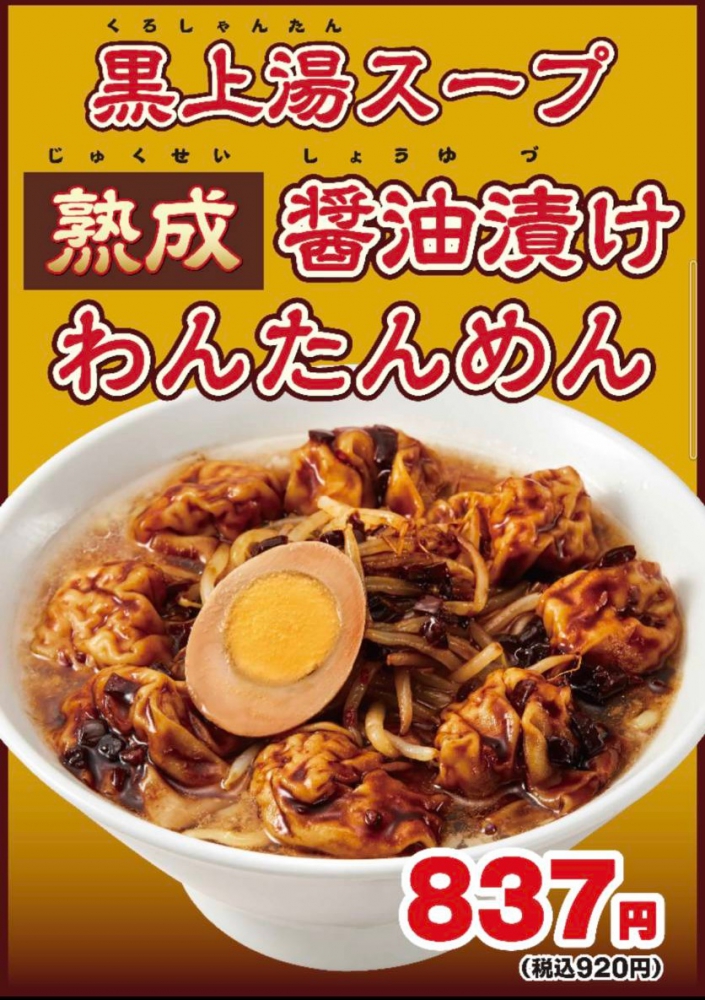 9月の新商品!「黒上湯スープ 熟成醤油漬けわんたんめん」